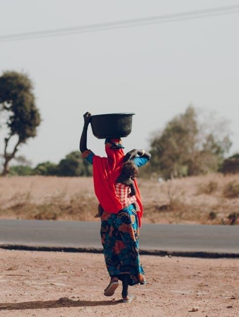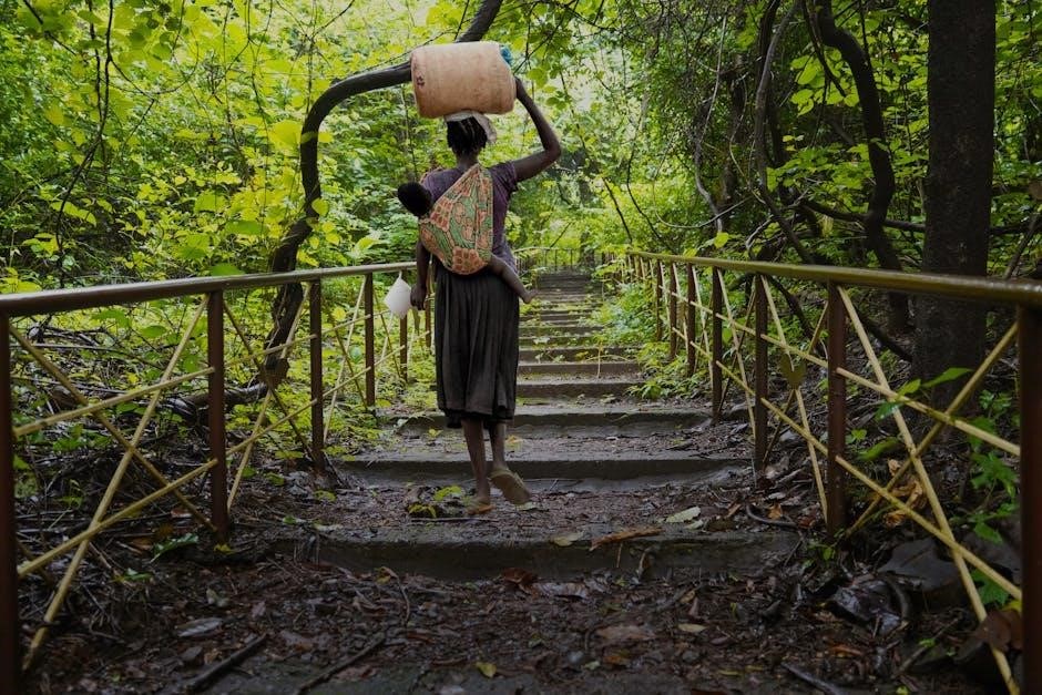 The PDF illustrates the immense burden placed upon Nya, highlighting the physical toll and the lost opportunities for education and play․ Despite these hardships, Nya embodies quiet resilience and hope for a better future․